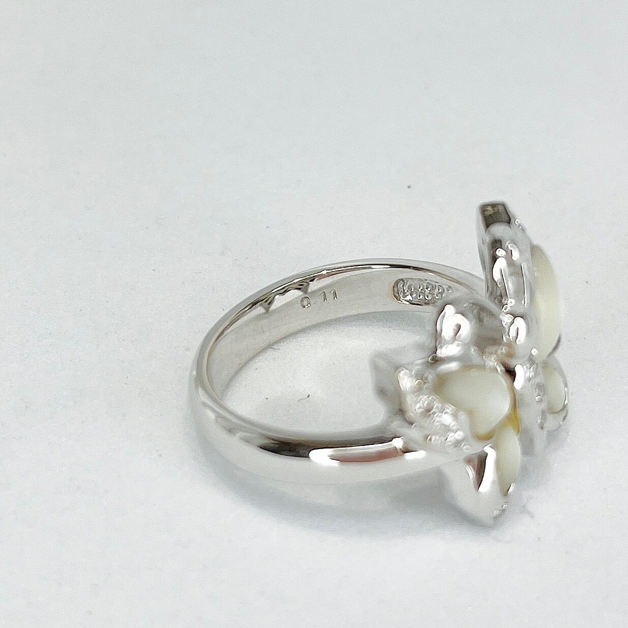【お客様お取り置き】天然シェル 天然ダイヤモンド0.11ct K18WG リング 鑑別書付