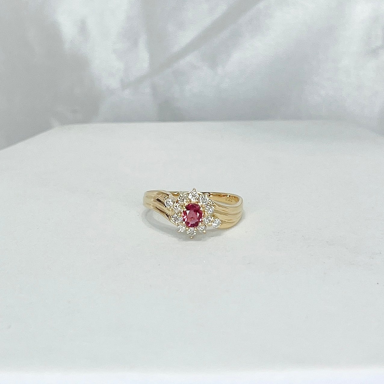 天然ルビー0.23ct 天然ダイヤモンド K18YG リング 鑑別書付
