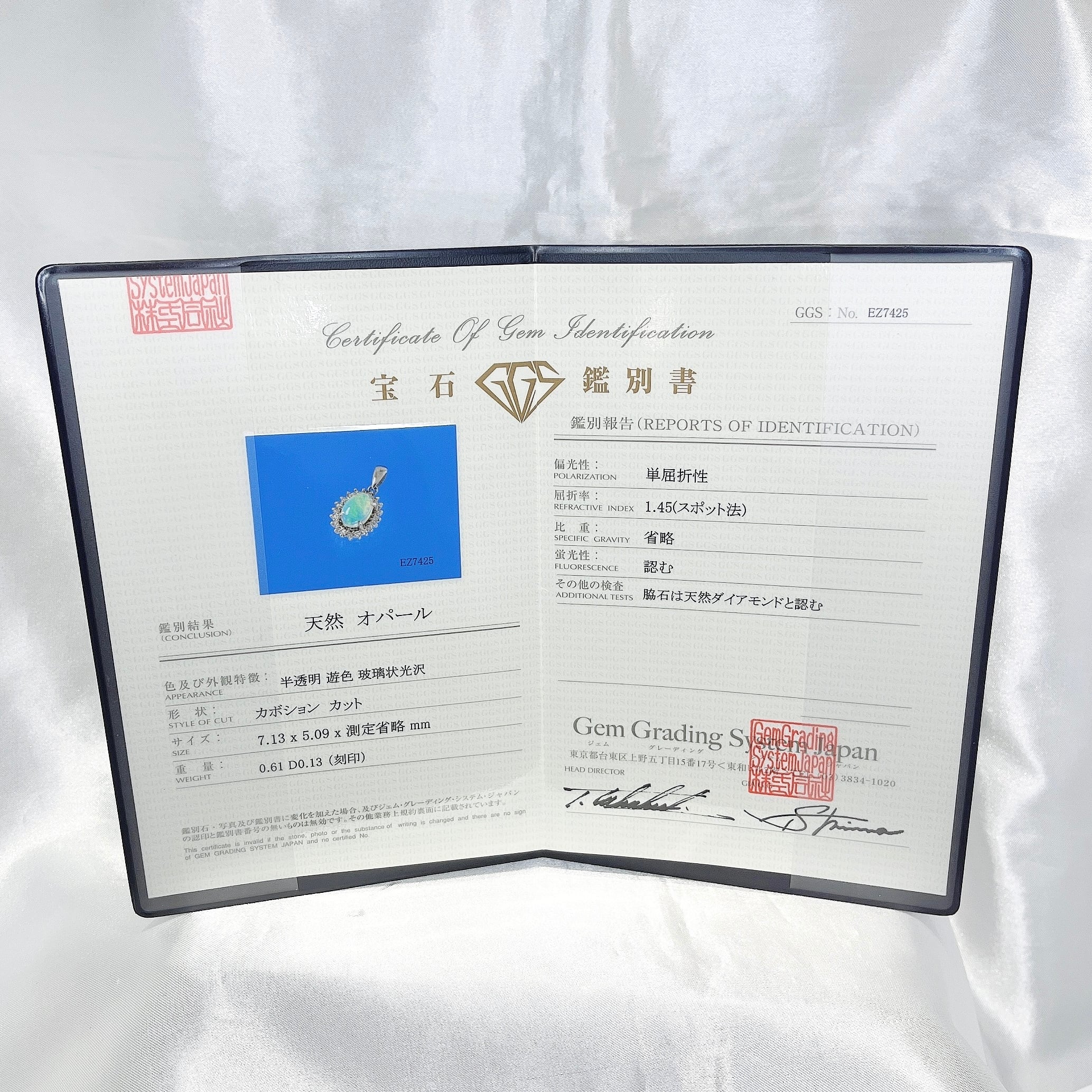 天然オパール0.61ct 天然ダイヤモンド0.13ct PT900トップ 鑑別書付