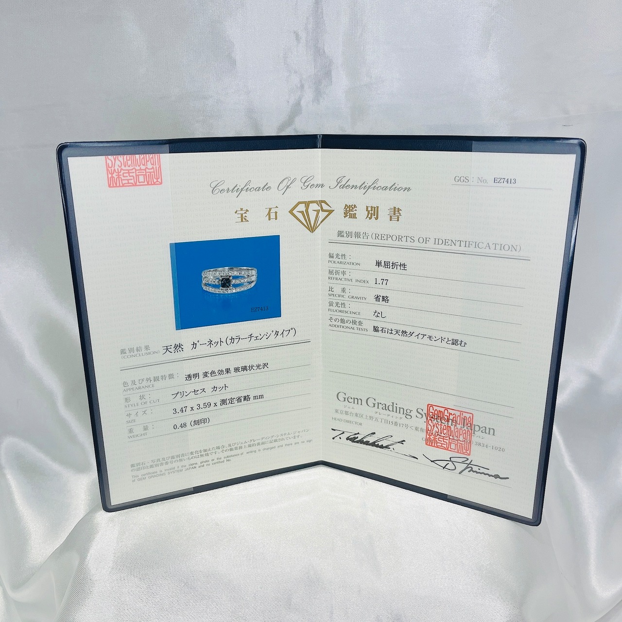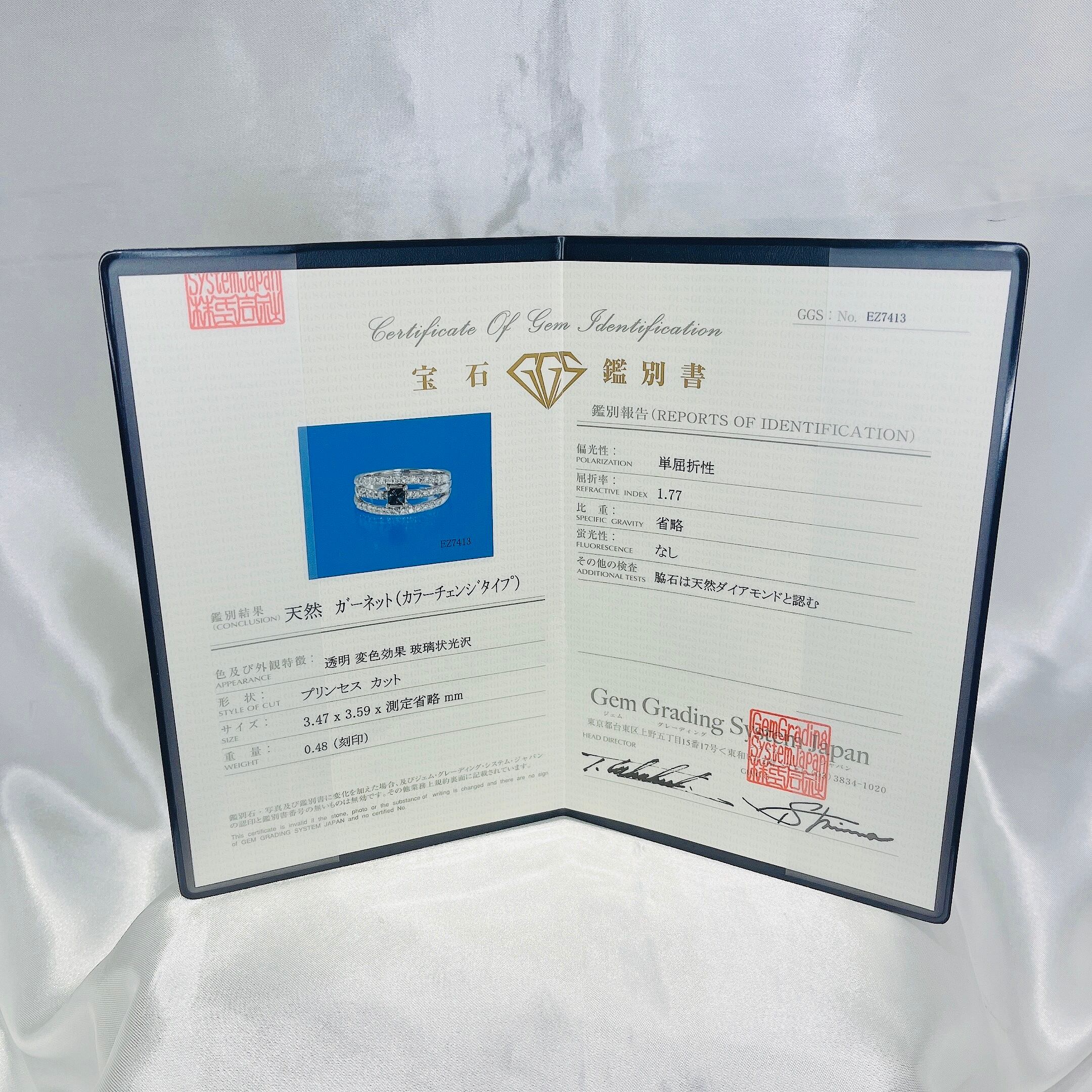 天然ガーネット0.48ct 天然ダイヤモンド PT900 リング 鑑別書付