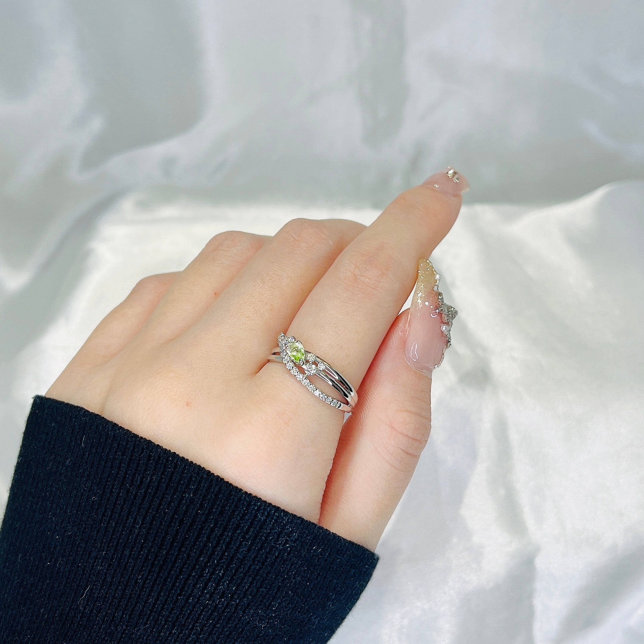 ●繊細なデザインとダイヤモンドの輝きが指元を華やかに彩ります。