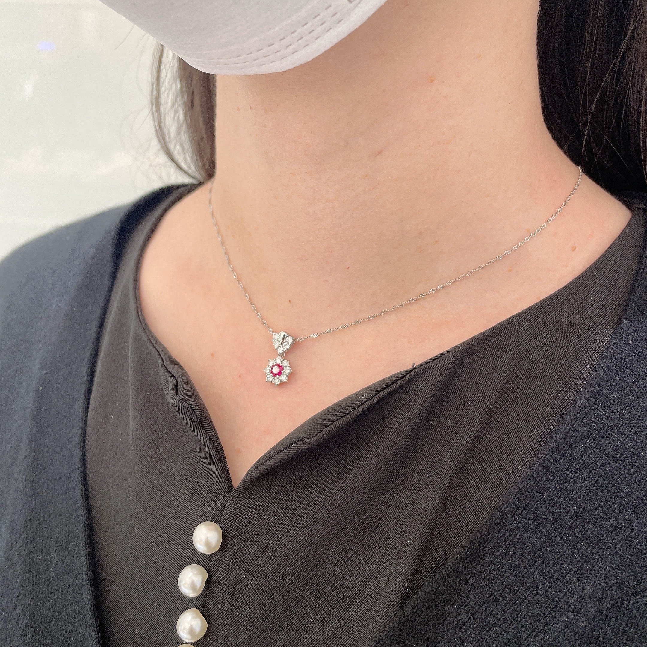 ●ダイヤモンドとルビーのコントラストが美しいネックレスでございます。