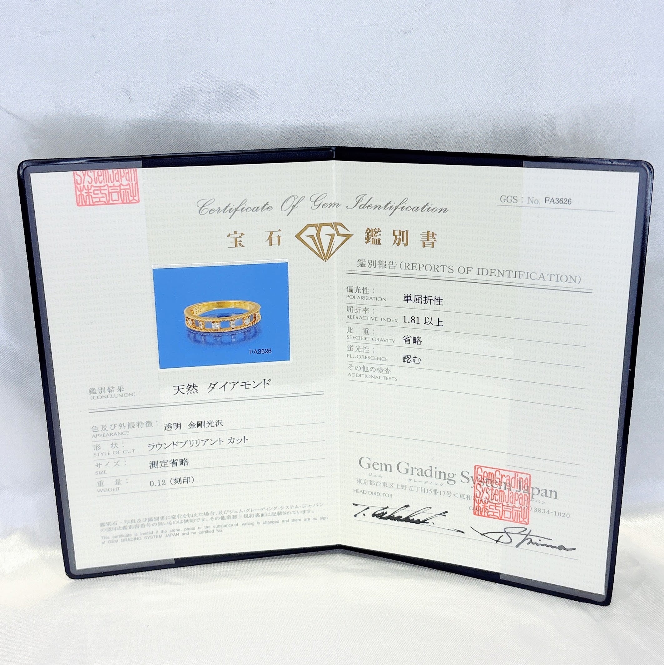 天然ダイヤモンド0.12ct K18YG リング 鑑別書付