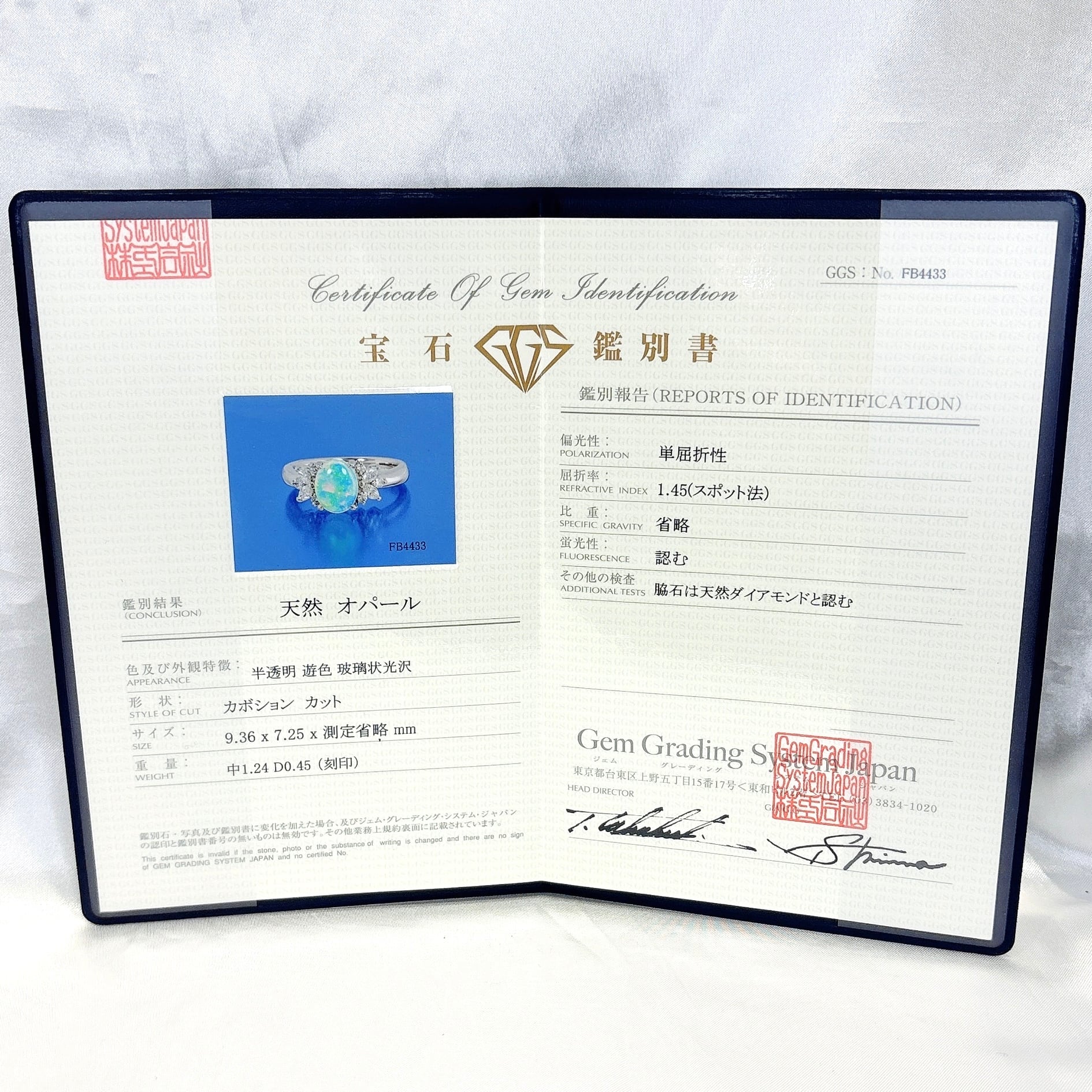 天然オパール1.24ct 天然ダイヤモンド0.45ct PT900 リング 鑑別書付