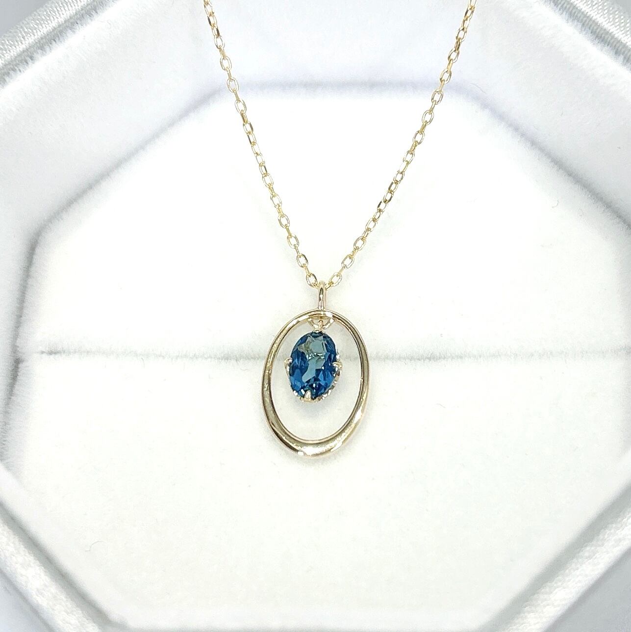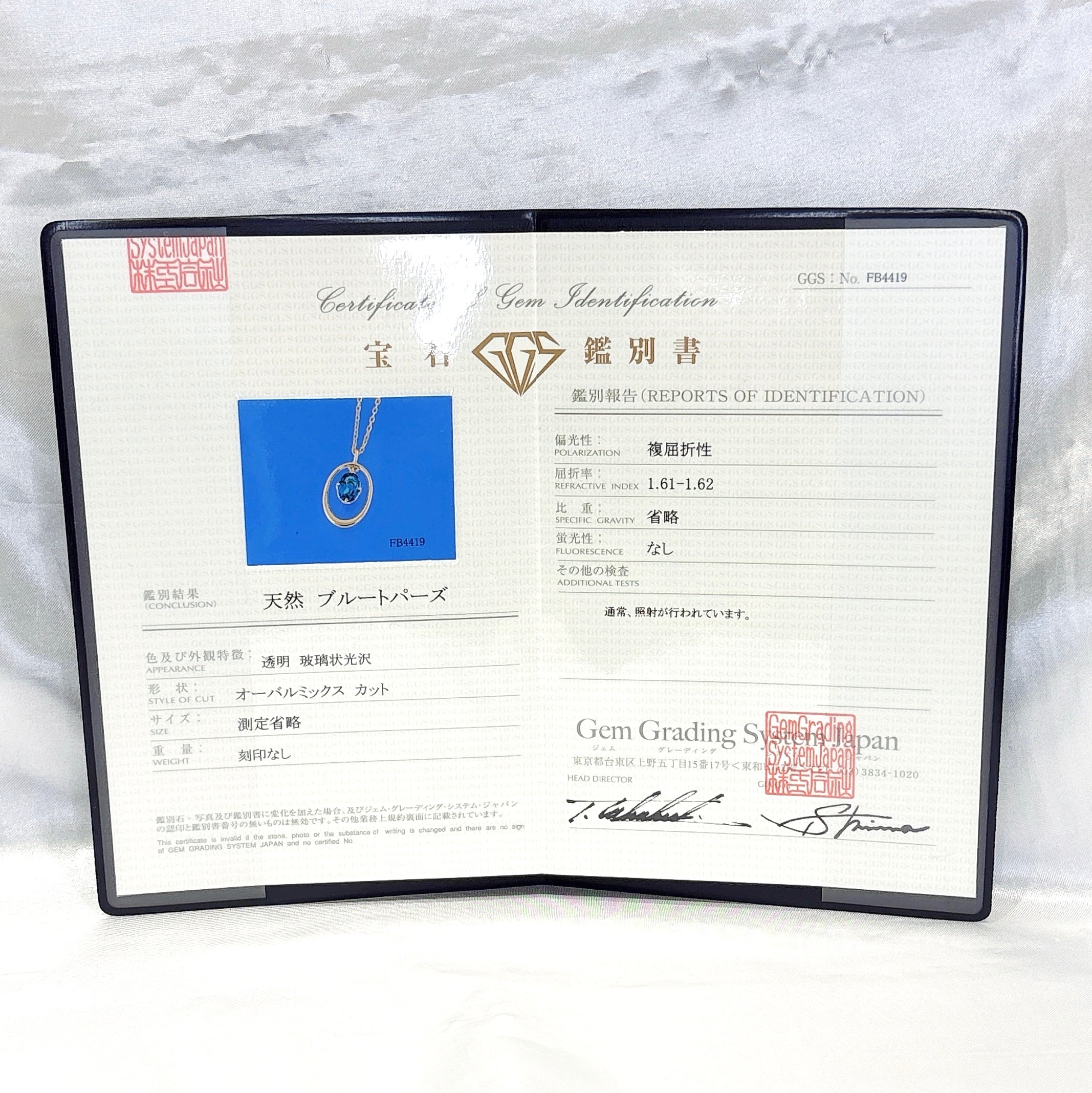 天然ブルートパーズ ネックレス K10YG 鑑別書付