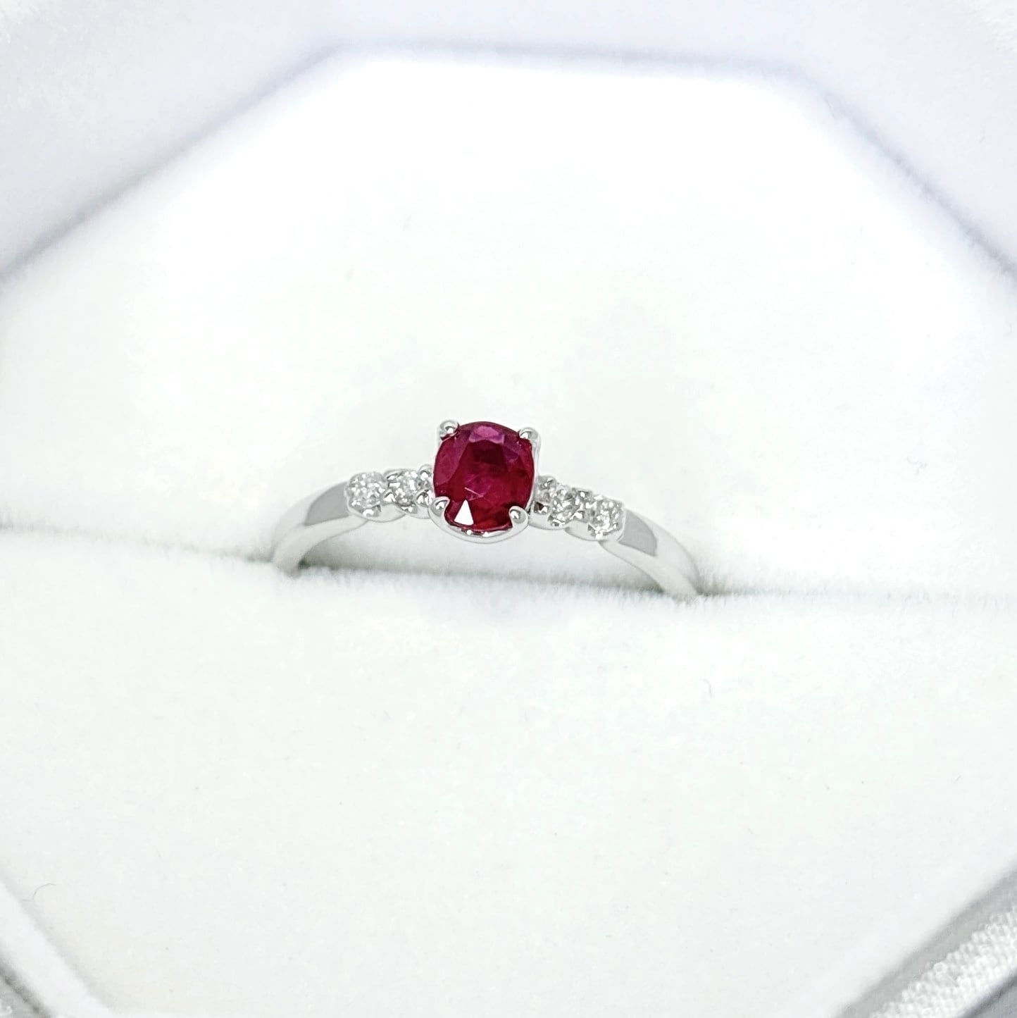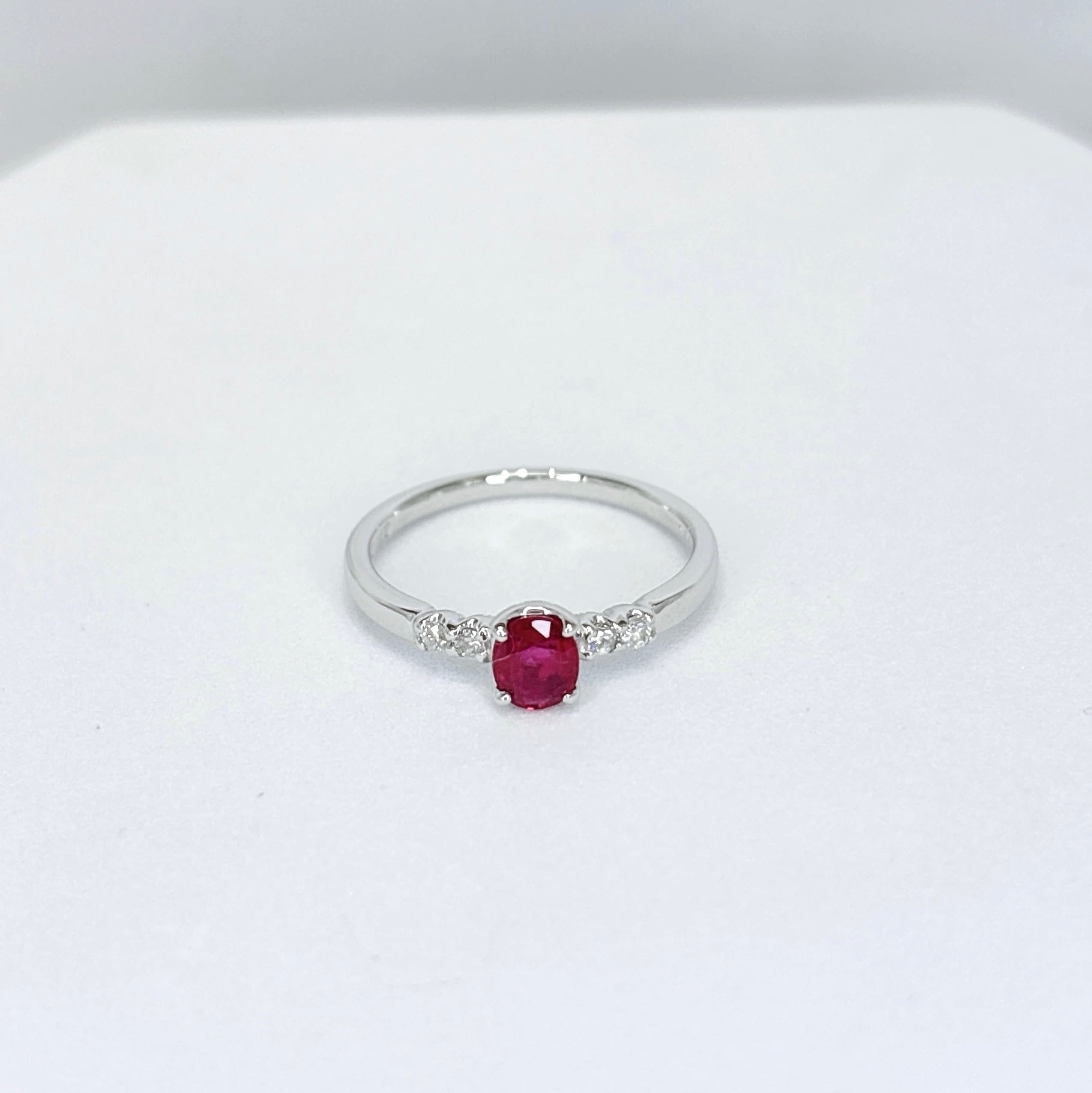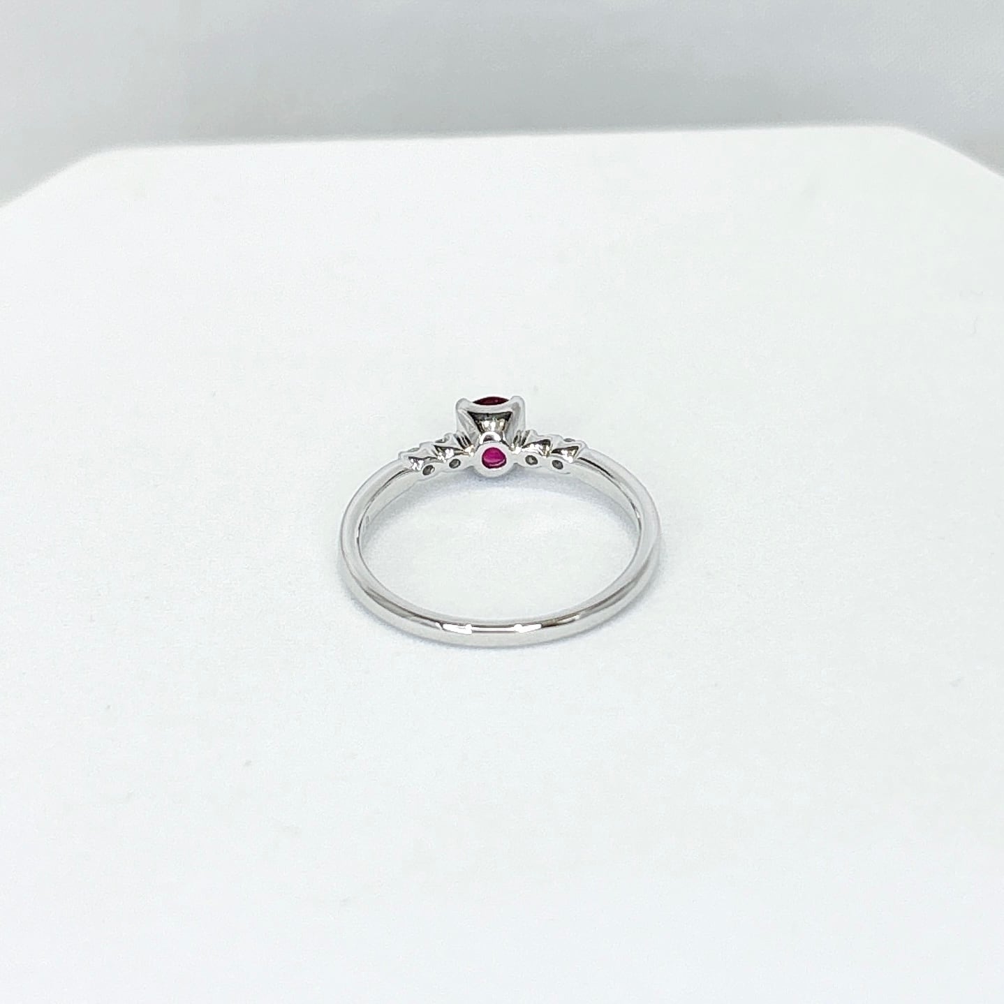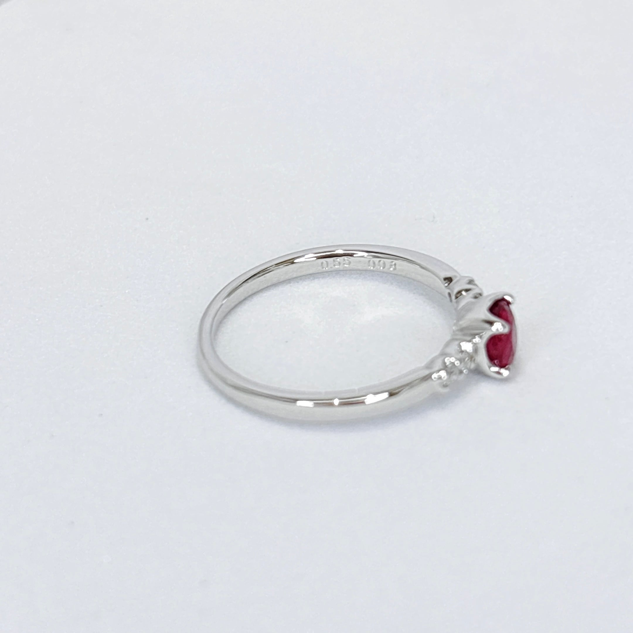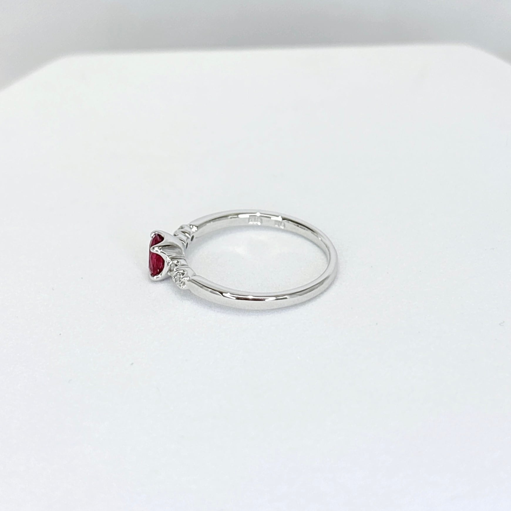 ●ホワイトの地金と赤いルビーが合わさる華やかなリングです。