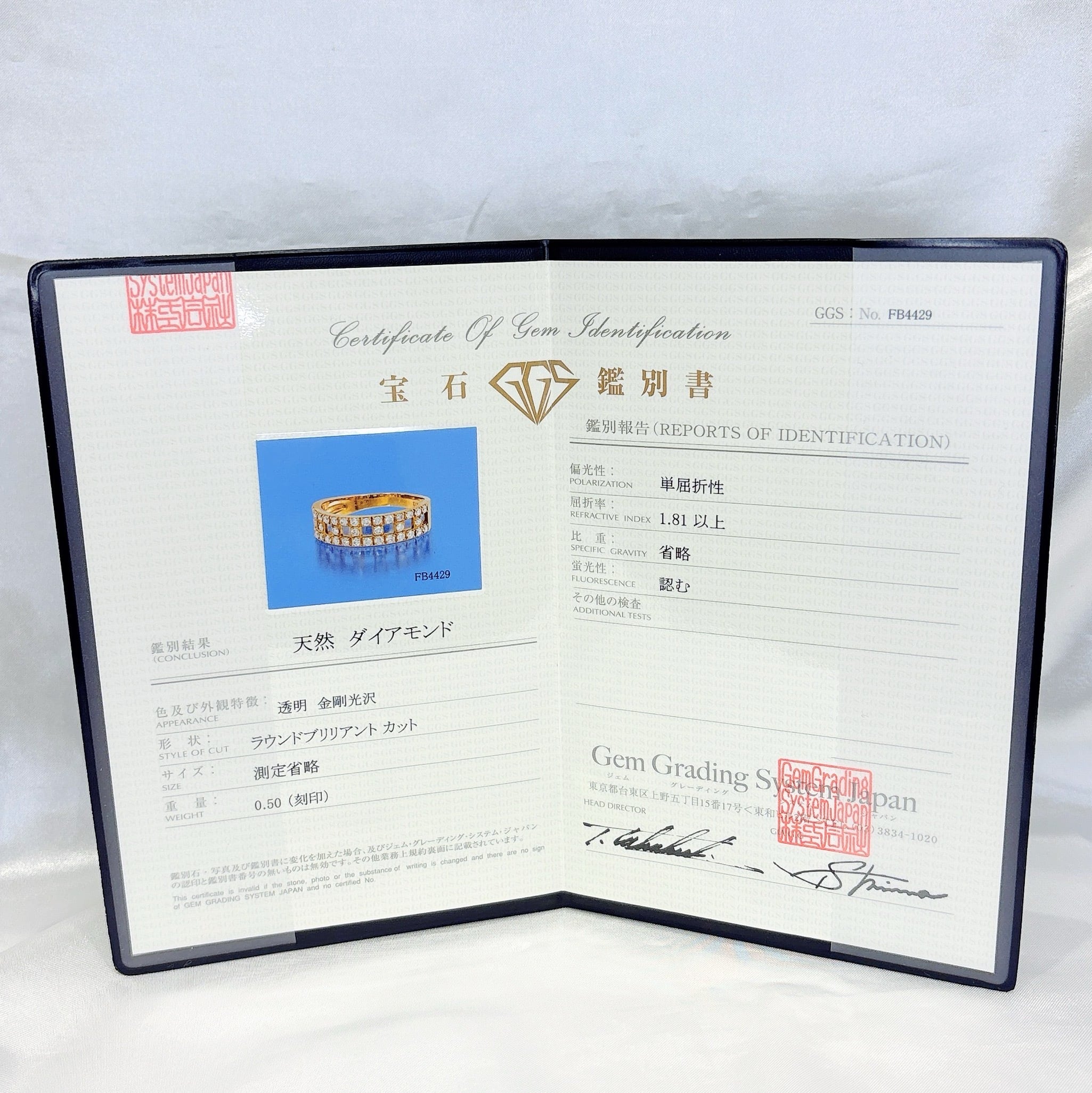 天然ダイヤモンド0.50ct K18YG リング 鑑別書付