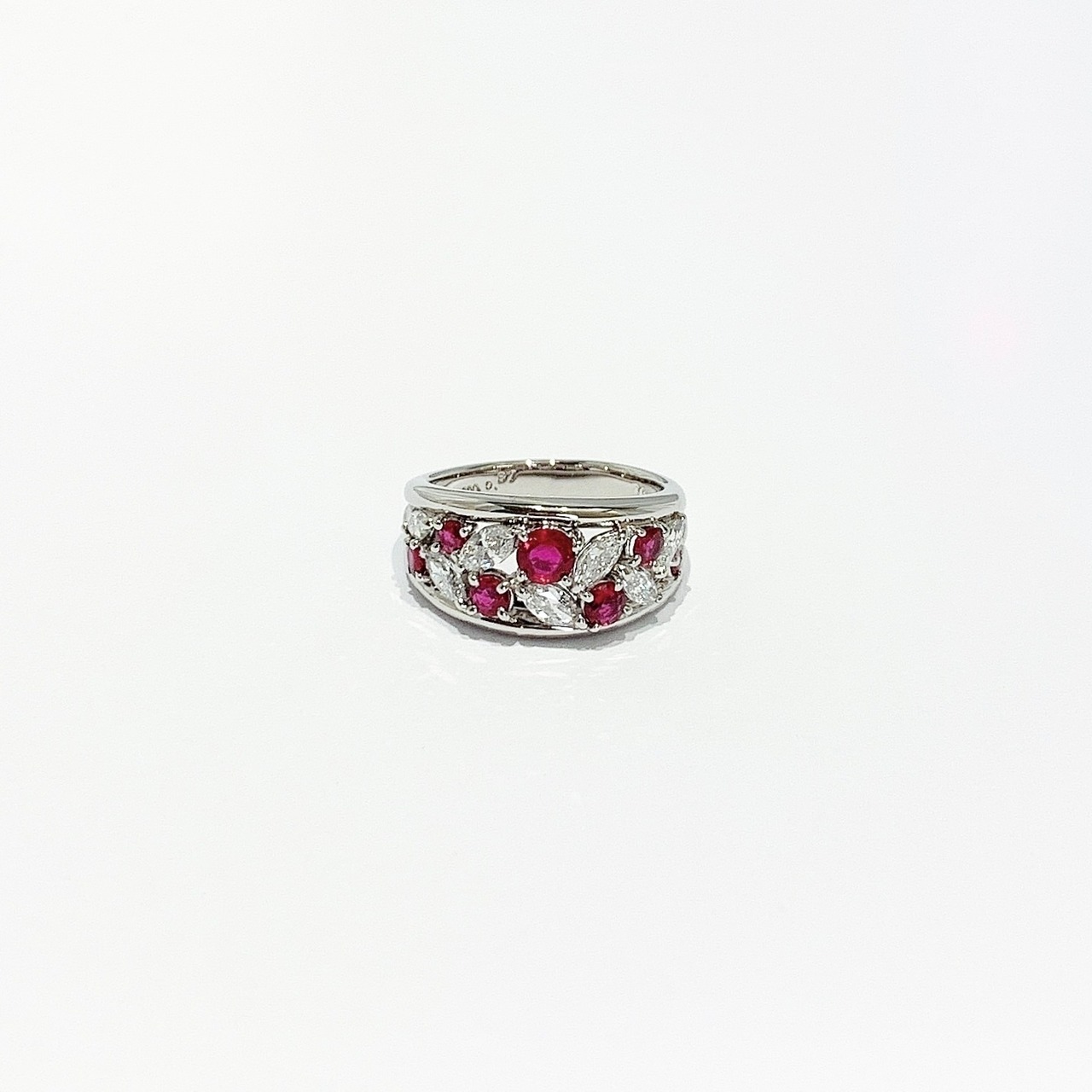●交互にはめ込まれたルビーとダイヤモンドが美しいリングです。