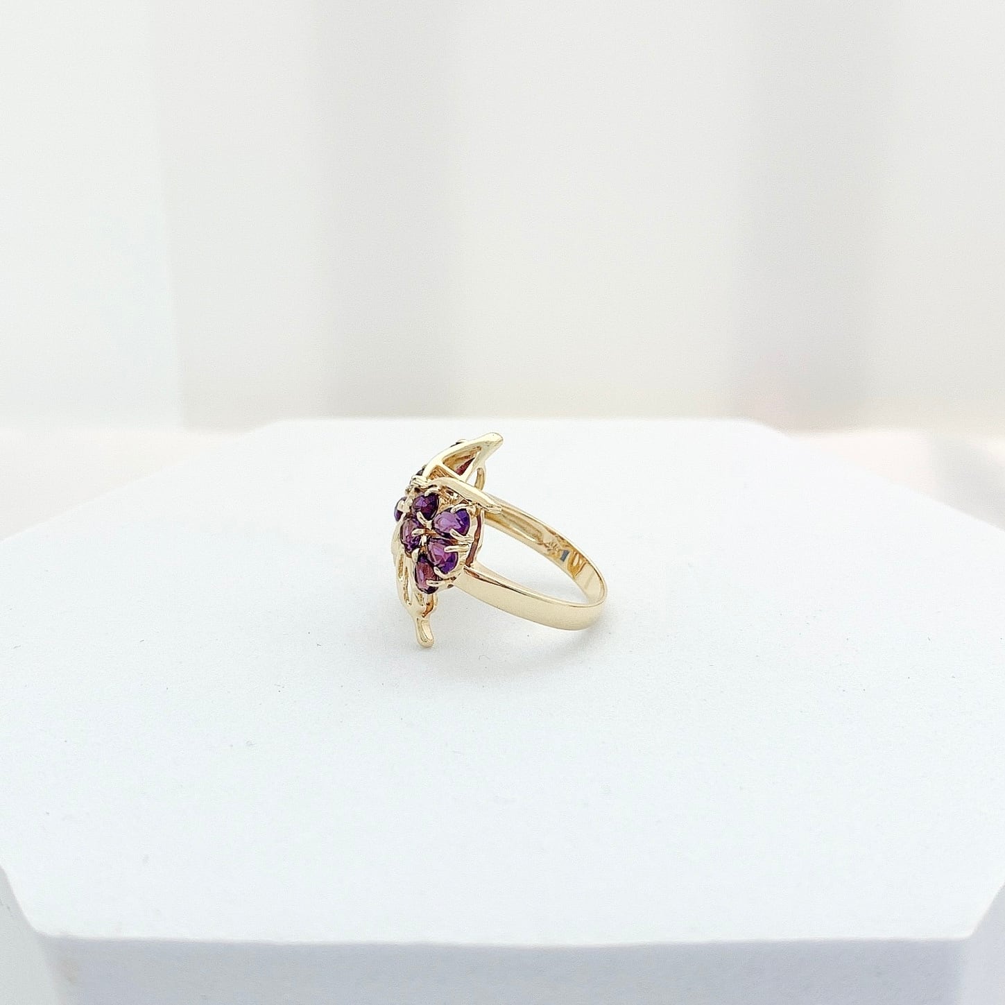 アメジスト 天然ダイヤモンド K18YG リング 鑑別書付